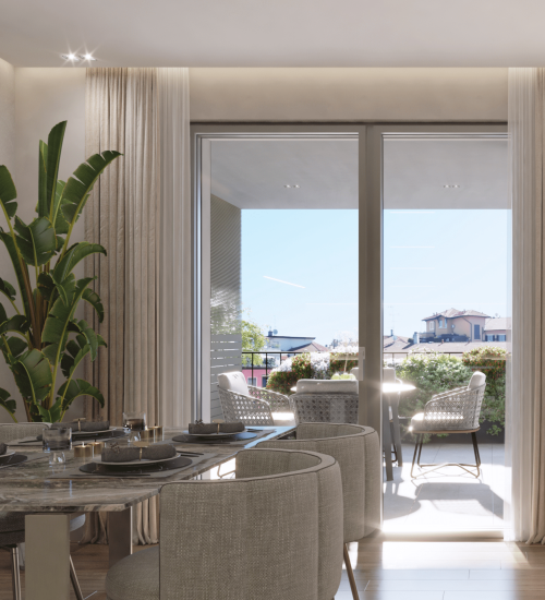 Ogni appartamento dispone di spazi esterni privati come terrazzi, logge e angoli verdi, autentiche oasi di tranquillità per vivere momenti di relax.
